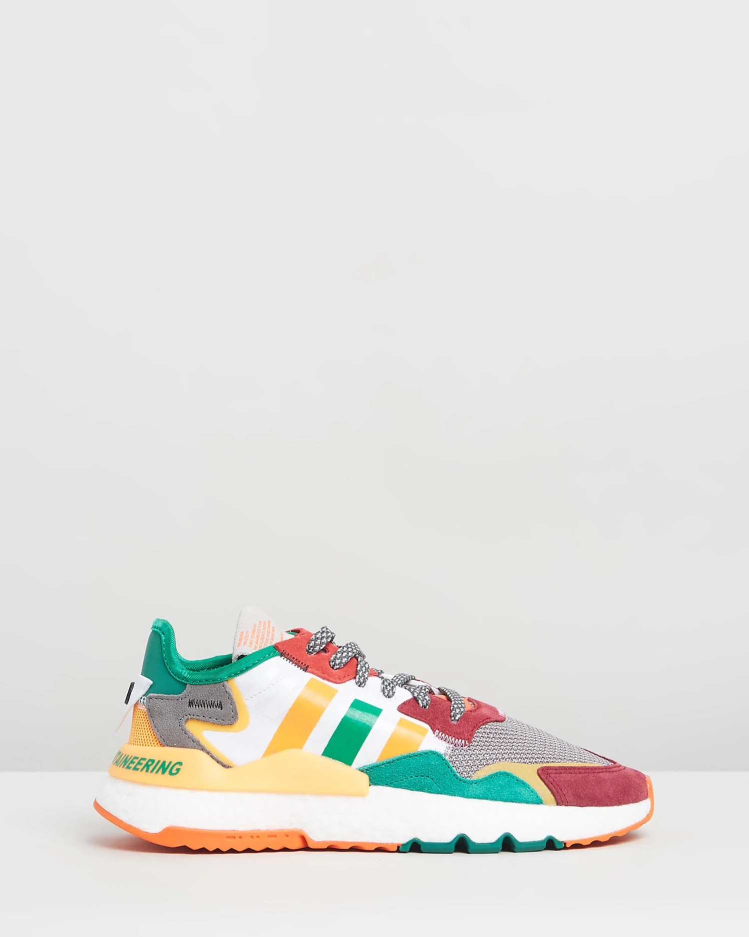 Adopting a signature adidas silhouette and making it their own, White Mountaineering’s WM x adidas Nite Joggers are panelled in knit, suede, mesh and ripstop for a dynamic effect. A vivid colour palette and a cushioned Boost midsole finish off the sneakers in both style and comfort.- Suede, ripstop, knit and mesh panelling