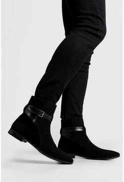 Wrap Around Faux Suede Chelsea Boots In Black