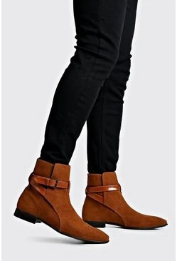 Wrap Around Faux Suede Chelsea Boots In Tan