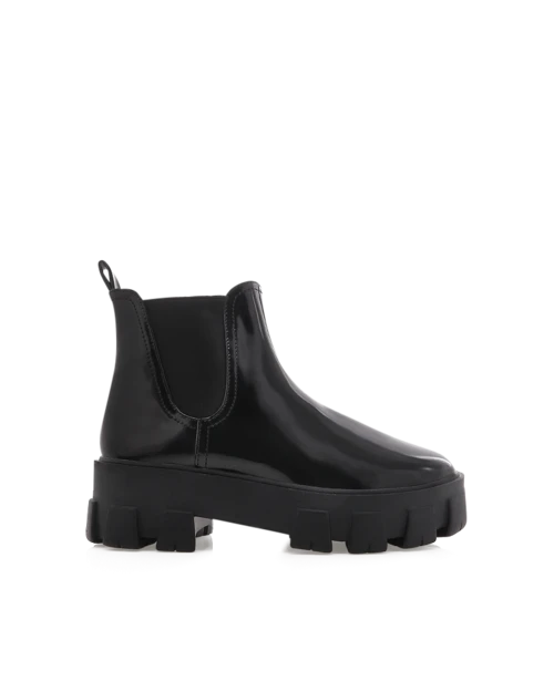 Xanthos by Billini is a modern combat ankle boot. Inject attitude and comfort into your off-duty outfit with this ultra-covetable boot. Featuring; thick rubber sole round toe side gusset back pull tab synthetic upper, lining and outsole Available in Black, Black Patent and Bone Patent. Available exclusively to Billini. Heel height 5cm.