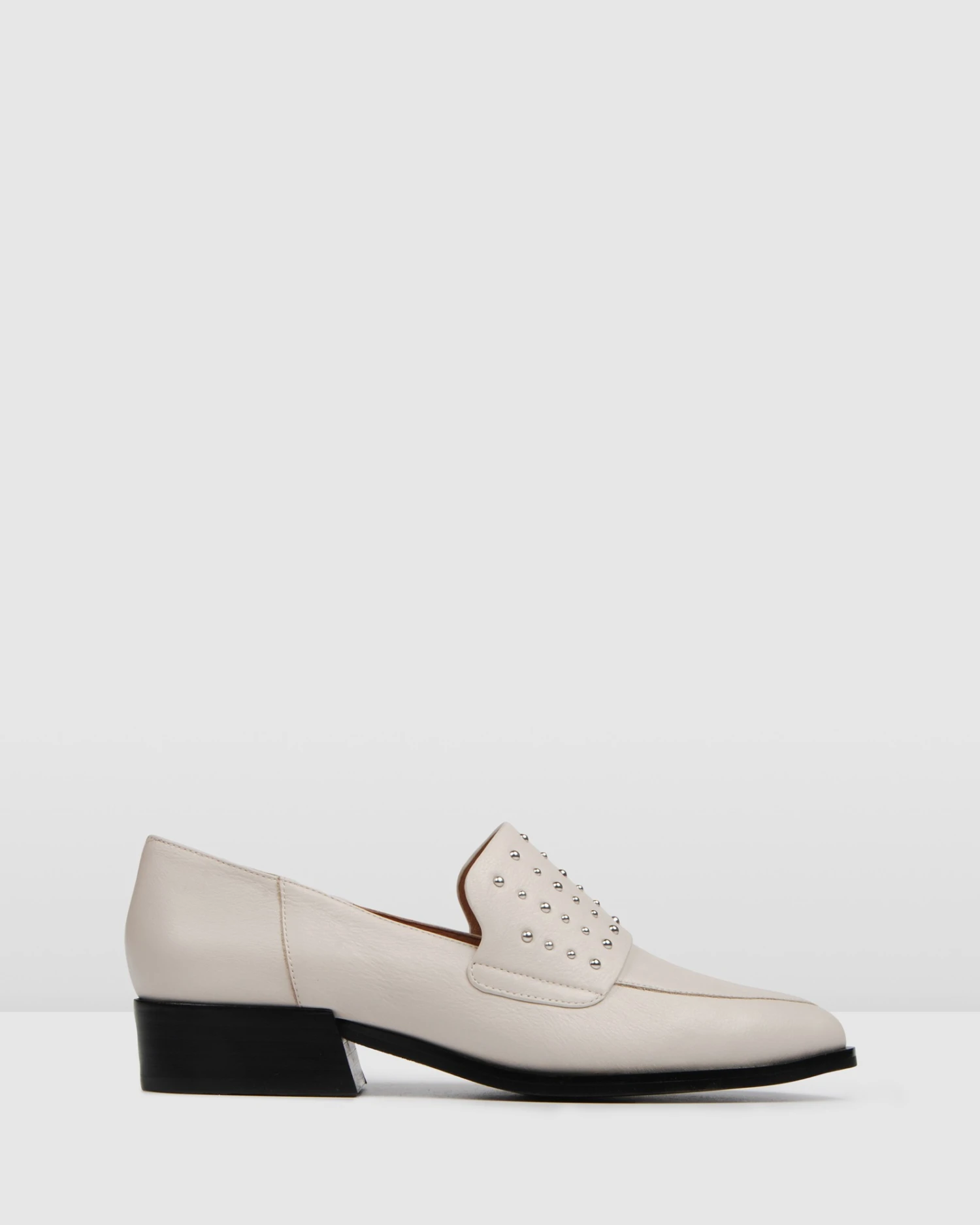 An Australian icon since 1998, Melbourne-based footwear label Jo Mercer is the cornerstone of any well-curated shoe wardrobe.The Xyler Loafers will add the Chic silhouette to your wardrobe, its intricate studs across the front provide that rocker-chic sensibility.