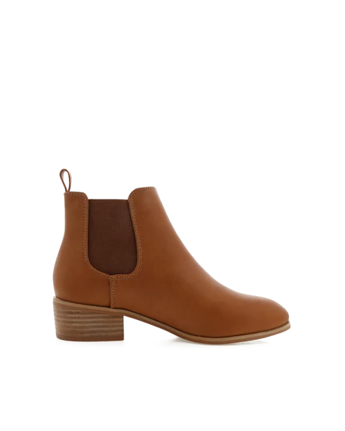 Zola by Billini is a go-to casual ankle boot. A go-to for off duty dressing or festivals, this boot is an everyday classic Featuring; low stacked block heel ankle boot upper cut below the ankle bone round toe shape exposed elastic gusset sides pull tab back synthetic leather upper, lining and outsole Available in Black and Tan. Heel height 4cm.